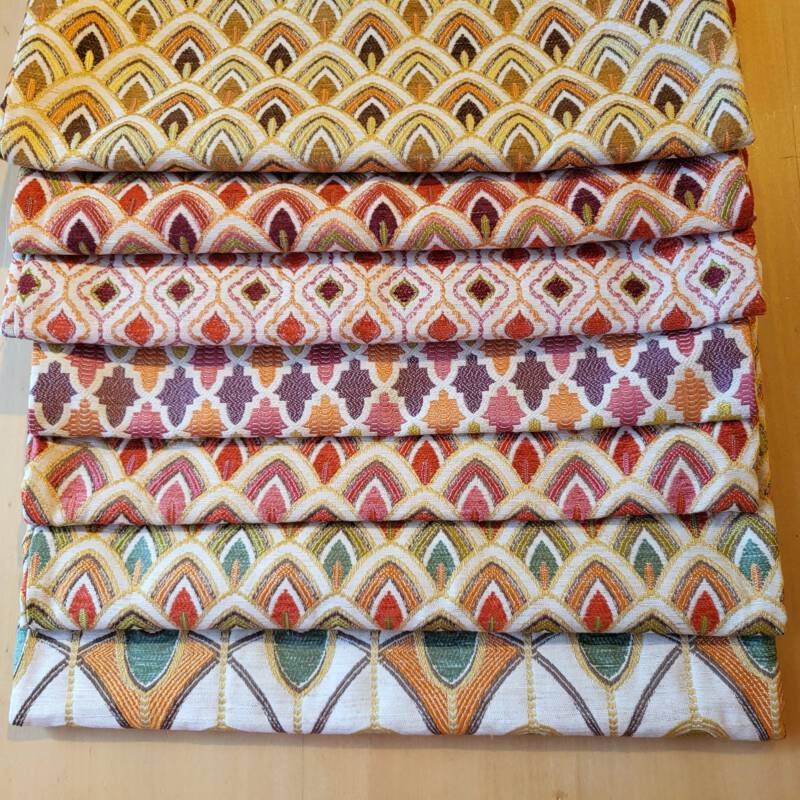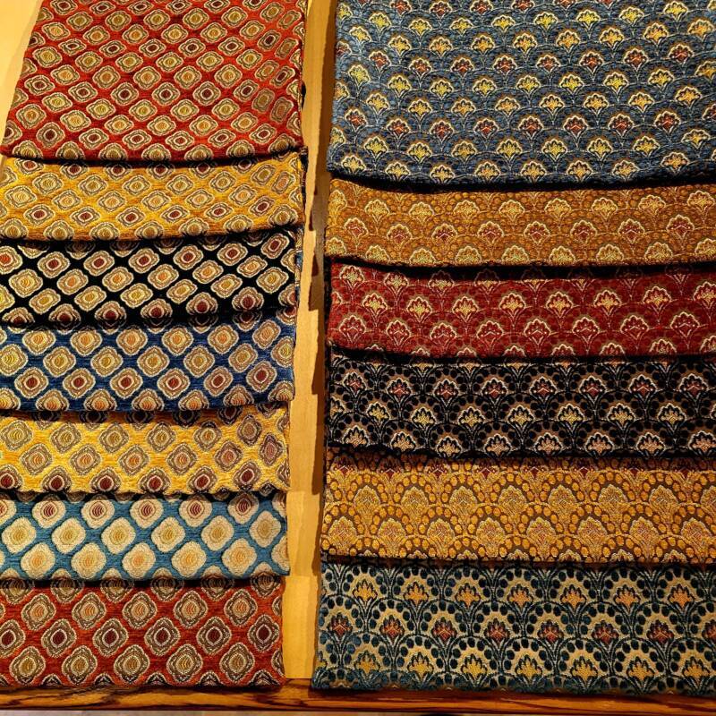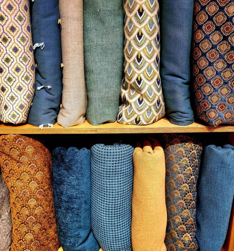 Onderstaande stoffen zijn speciaal voor ons gemaakt in de stad Bursa in Turkije. Deze bijzondere jaquard stoffen zijn geschikt om mee te bekleden, maar ook om gordijnen van te maken. We werken met een kleine fabriek, dat geeft ons de mogelijkheid kleuren en patronen zelf te ontwikkelen. Dit gebeurt met oog voor mens en milieu, deze leverancier is inmiddels uitgegroeid tot een belangrijke pijler en onderdeel van ons bedrijf. Tot de collectie behoren ook kussenhoezen uitgevoerd in diverse stoffen en maten.