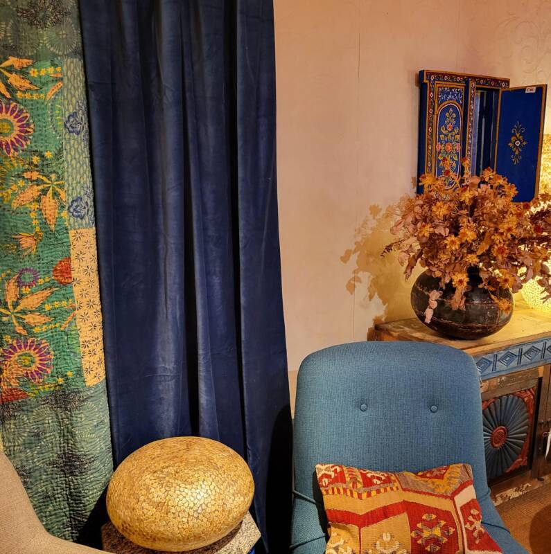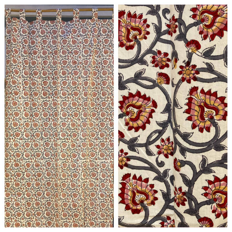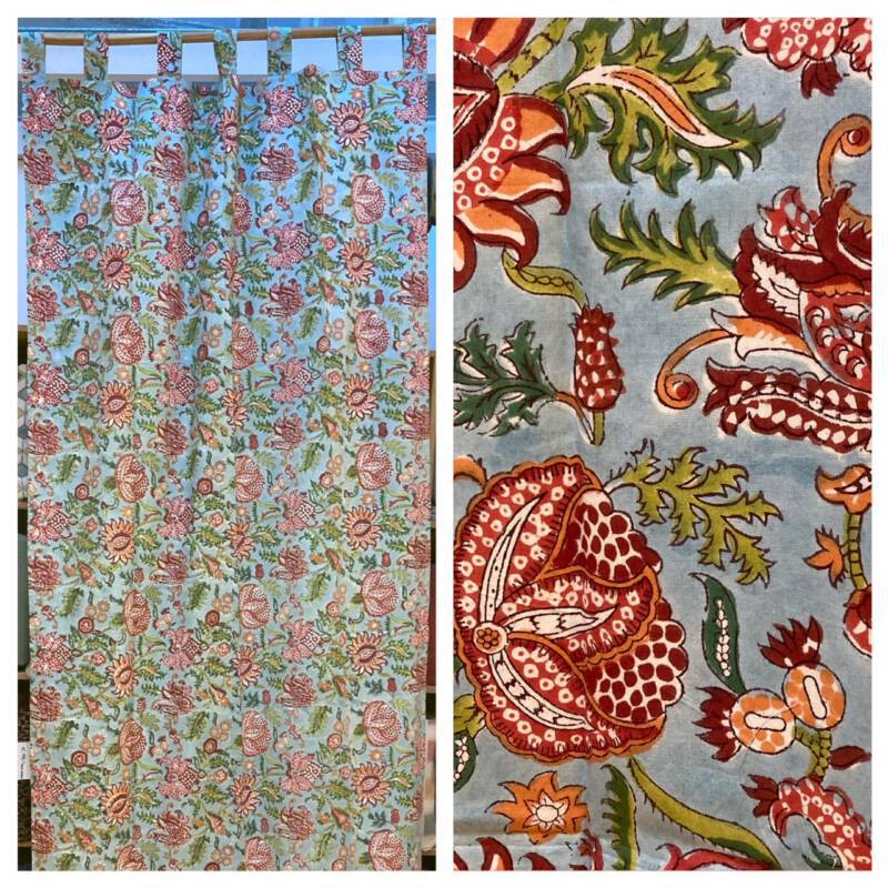 Tevens hebben wij blockprints in onze collectie. Deze katoenen handbedrukte gordijnen hebben lussen en zijn dus geschikt om aan een roede te hangen. Ze kosten € 49,- per stuk. Het formaat is 110 x 270 cm. Kies uw favoriet.