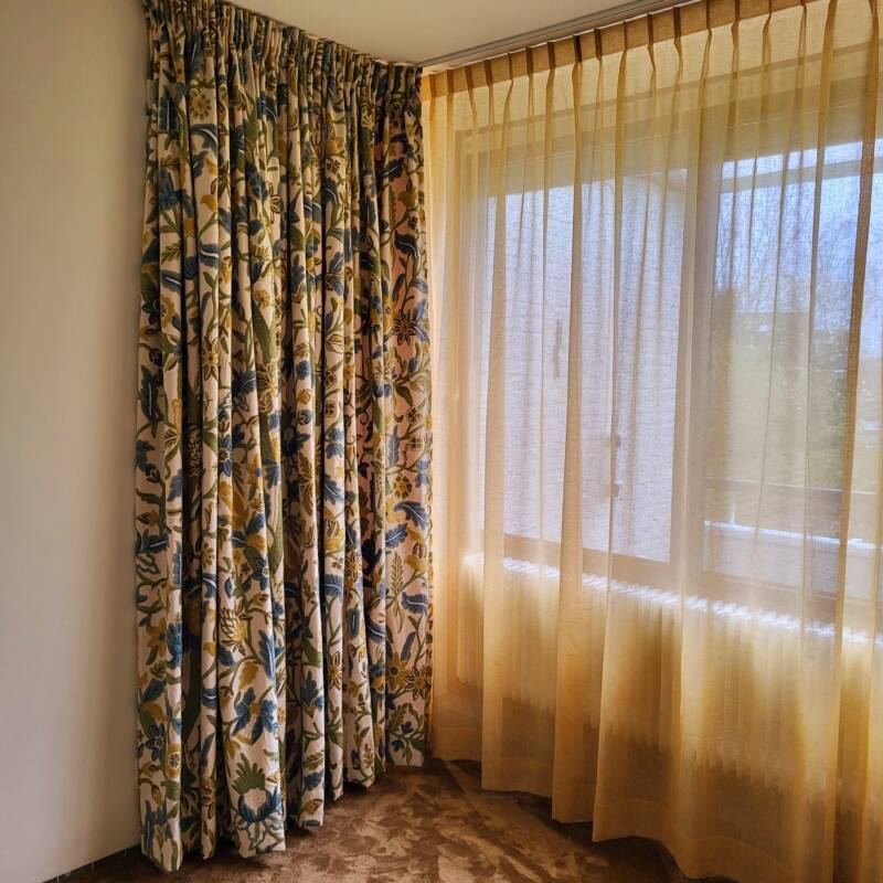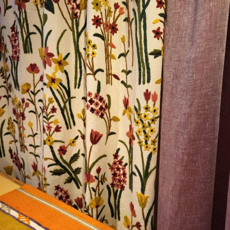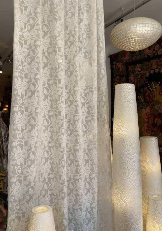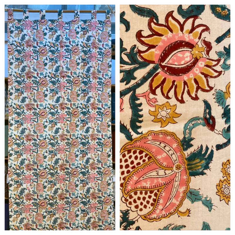 Naast de verkoop per meter, zijn er in deze prachtige materialen grand foulards, beddenspreien, kussenhoezen en bovenstaande kant en klare gordijnen verkrijgbaar.