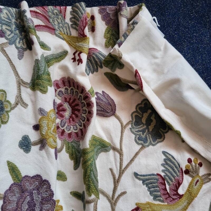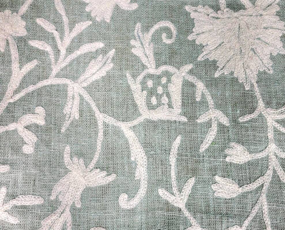 De stoffen zijn 130 cm breed en geschikt om gordijnen van te laten maken. Maar ook als wandkleed of kussen zijn ze heel decoratief. Onze Crewel stoffen komen uit India en worden gemaakt in de vallei van Kasjmir. Bij het merendeel van de stoffen ligt de prijs op € 65,- per meter.