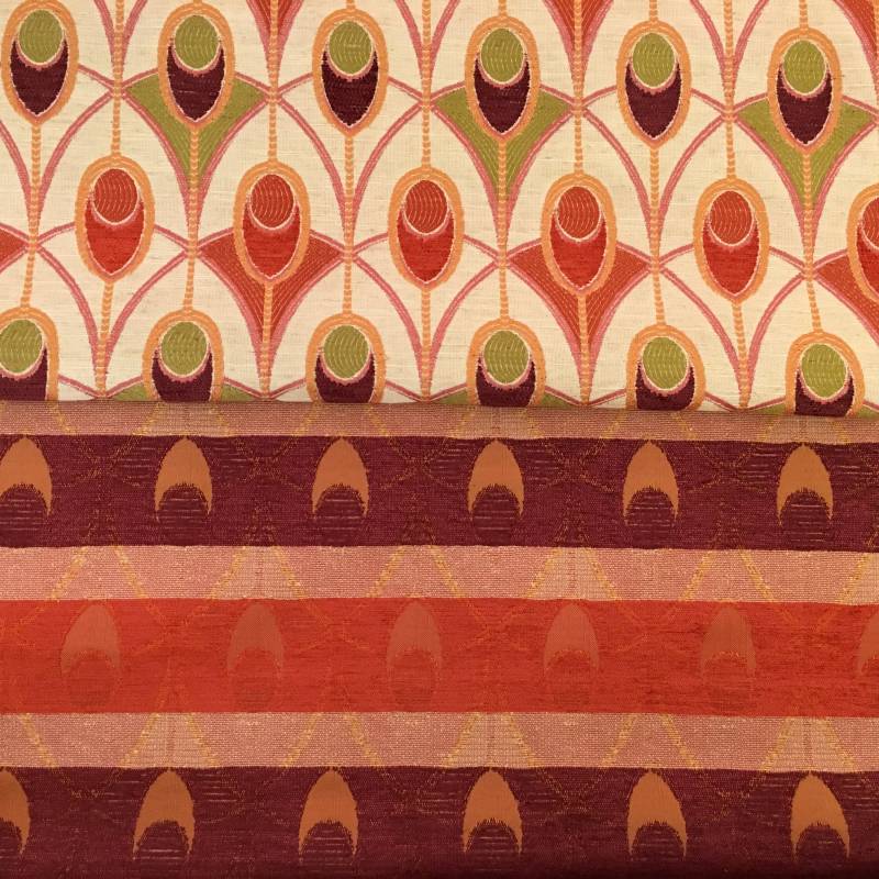 Een mooie aanvulling op de retro zijn deze uni geweven stoffen, ze komen van het zelfde bedrijf en sluiten goed aan bij het inmiddels ruime assortiment aan stoffen wat wij voeren. Met een martindale van 22000 geschikt voor het bekleden van meubelen of zoals u wilt ook voor gordijnen te gebruiken. De breedte is 140 cm en ze kosten € 45,- per meter.